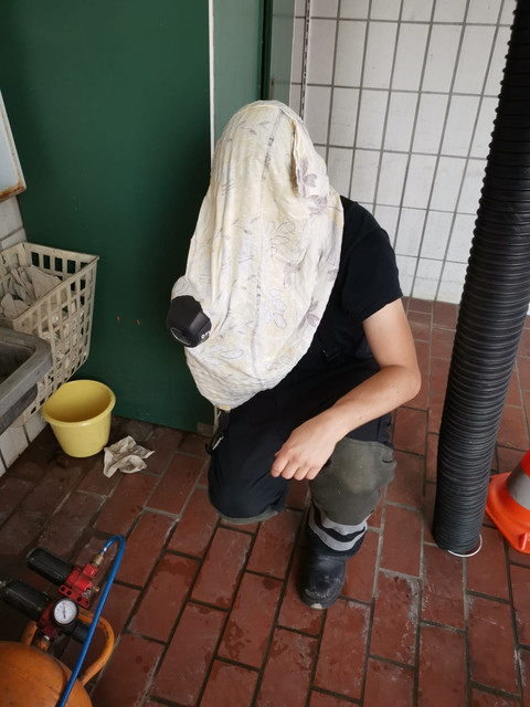Mit den abgedunkelten Masken einen Raum zu durchsuchen, der eigentlich "quadratisch, praktisch, gut" ist, sollte normaler weise kein großes Ding darstellen denkt man sich... Nur leider verlässt einen die Orientierung schneller, als man meint zu glauben. Gerade wenn sich die Führungshand von der Wand löst wird es schwierig wieder die korrekte Richtung einzuschlagen. Außerdem kommt hinzu, dass die Bandschlinge, mit der man den Kontakt zum Truppmitglied sicherstellt, sich auch sehr gerne an Tischbeinen oder ähnlichen Dingen verfängt und man dann wohl oder übel den Tisch durch den Raum schleift, da man selber ja nicht sehen kann wo die Schlinge hängt und das lösen dieser sich dann doch schwierig gestaltet.💩 Aber genau deswegen ist uns als Atemschutzgeräteträger die ständige Aus- und Fortbildung so wichtig, um in Realeinsätzen Ruhe zu bewahren und die Situation professionell lösen zu können.